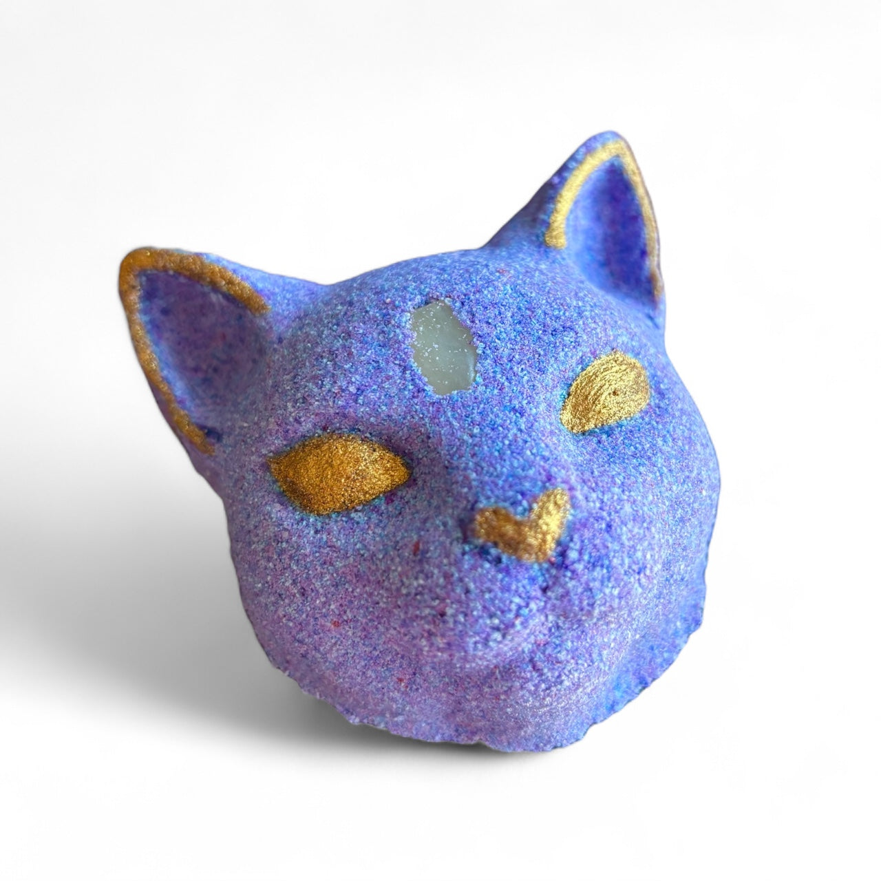 Hidden at the center is a quartz stone, a crystal long cherished for clarity and energy. Drop it in, watch the colors swirl, and let this kitten familiar bring a touch of mysticism (and relaxation) to your bath ritual.